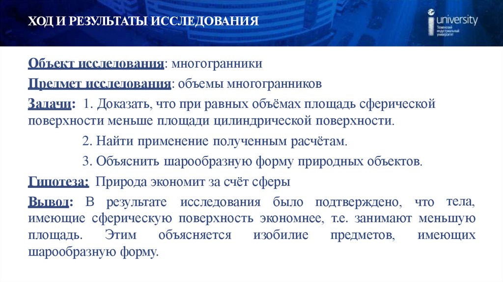 ХОД И РЕЗУЛЬТАТЫ ИССЛЕДОВАНИЯОбъект исследования: многогранники