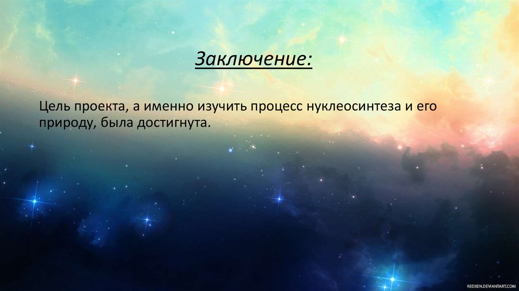 Заключение:Цель проекта, а именно изучить процесс нуклеосинтеза и его