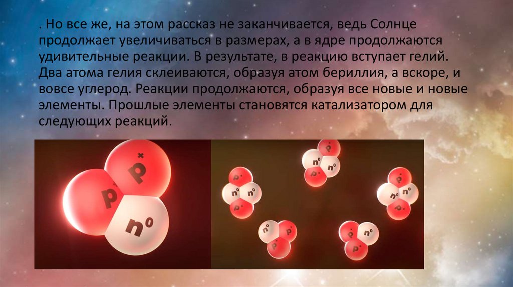 . Но все же, на этом рассказ не заканчивается, ведь Солнцепродолжает увеличиваться в размерах, а в ядре продолжаются