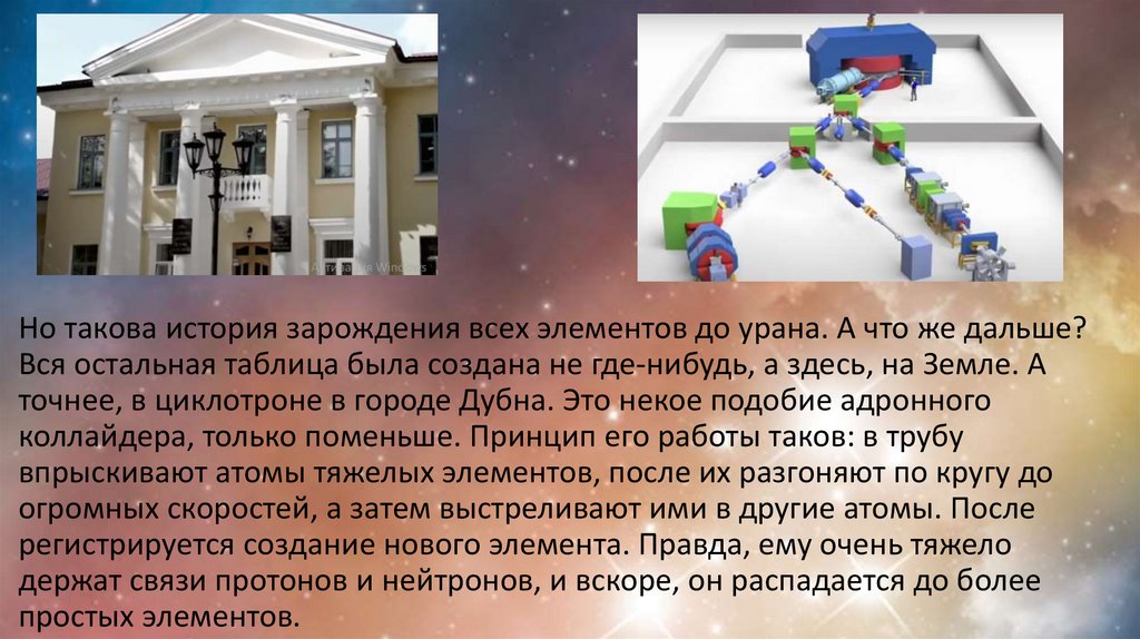 Но такова история зарождения всех элементов до урана. А что же дальше?Вся остальная таблица была создана не где-нибудь, а здесь, на Земле. А
