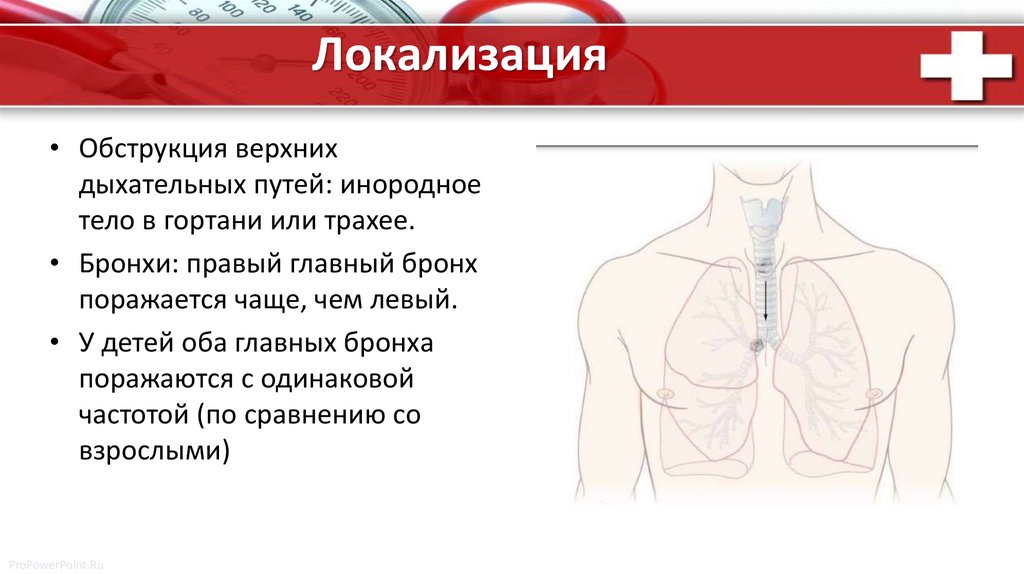 Локализация• Обструкция верхних