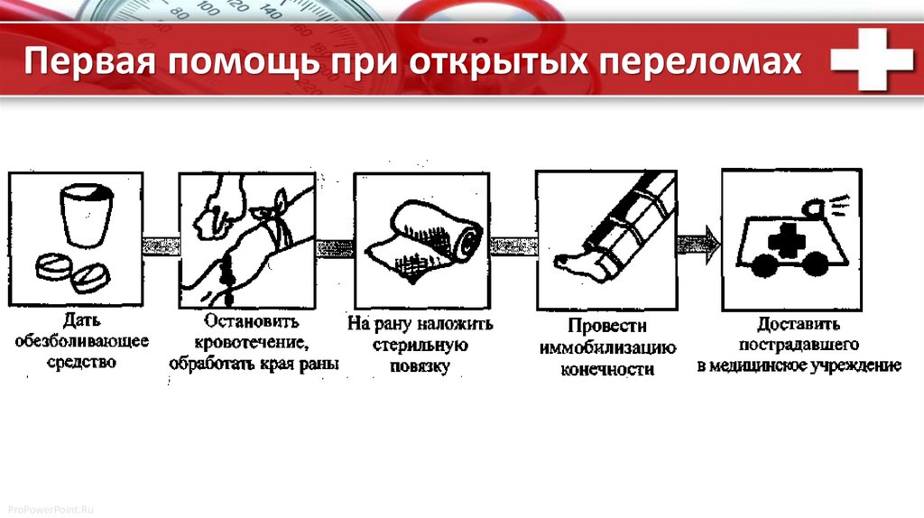 Первая помощь при открытых переломахProPowerPoint.Ru