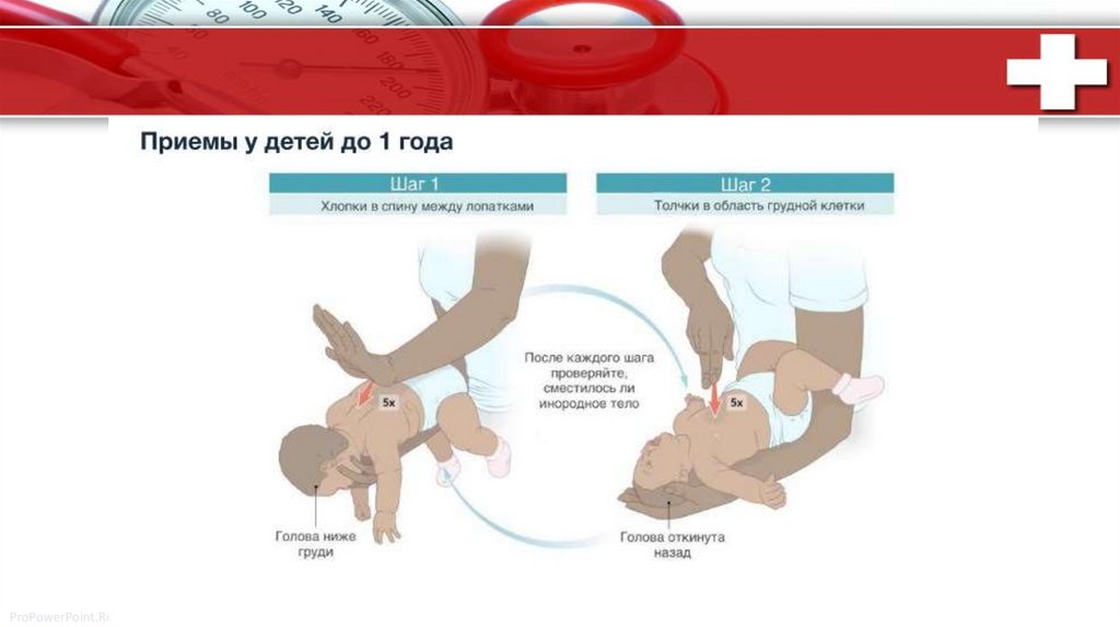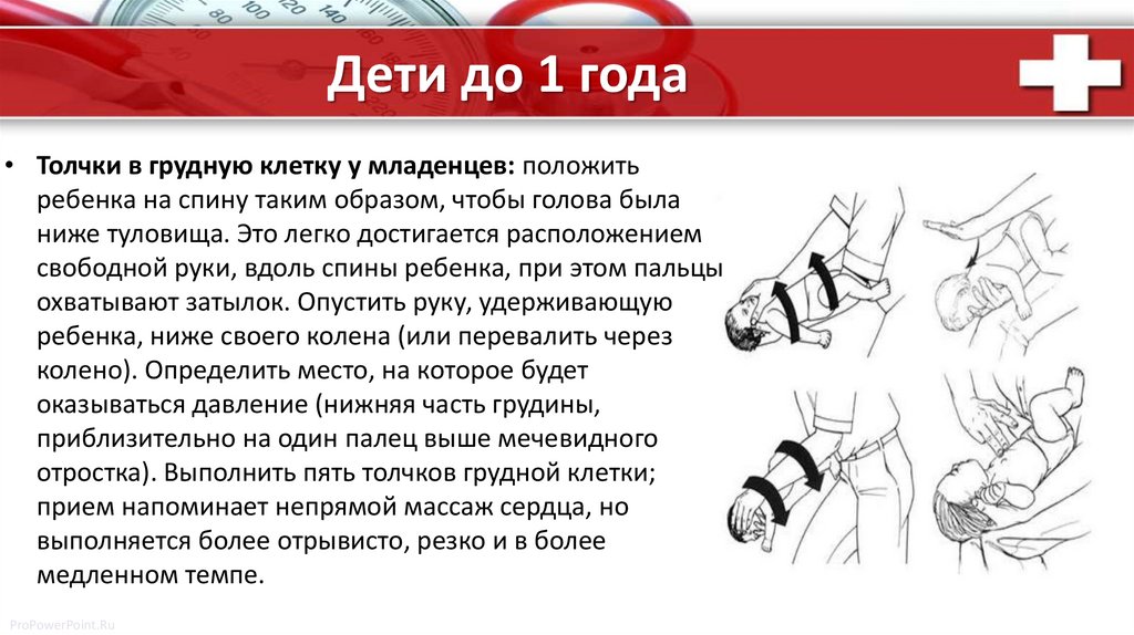 Дети до 1 года• Толчки в грудную клетку у младенцев: положить