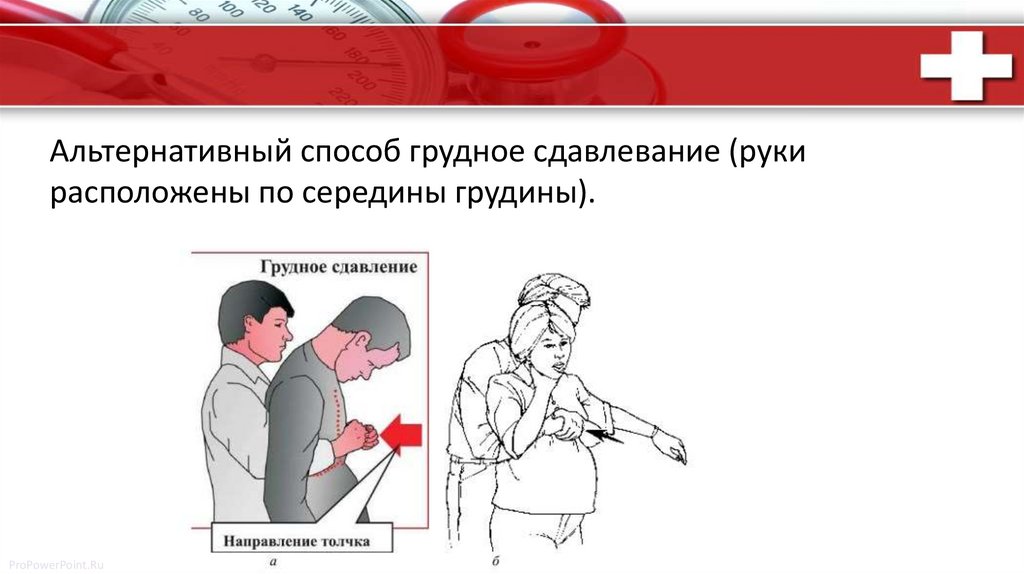 Альтернативный способ грудное сдавлевание (рукирасположены по середины грудины).
