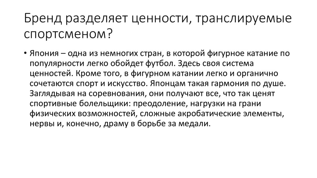 Бренд разделяет ценности, транслируемыеспортсменом?