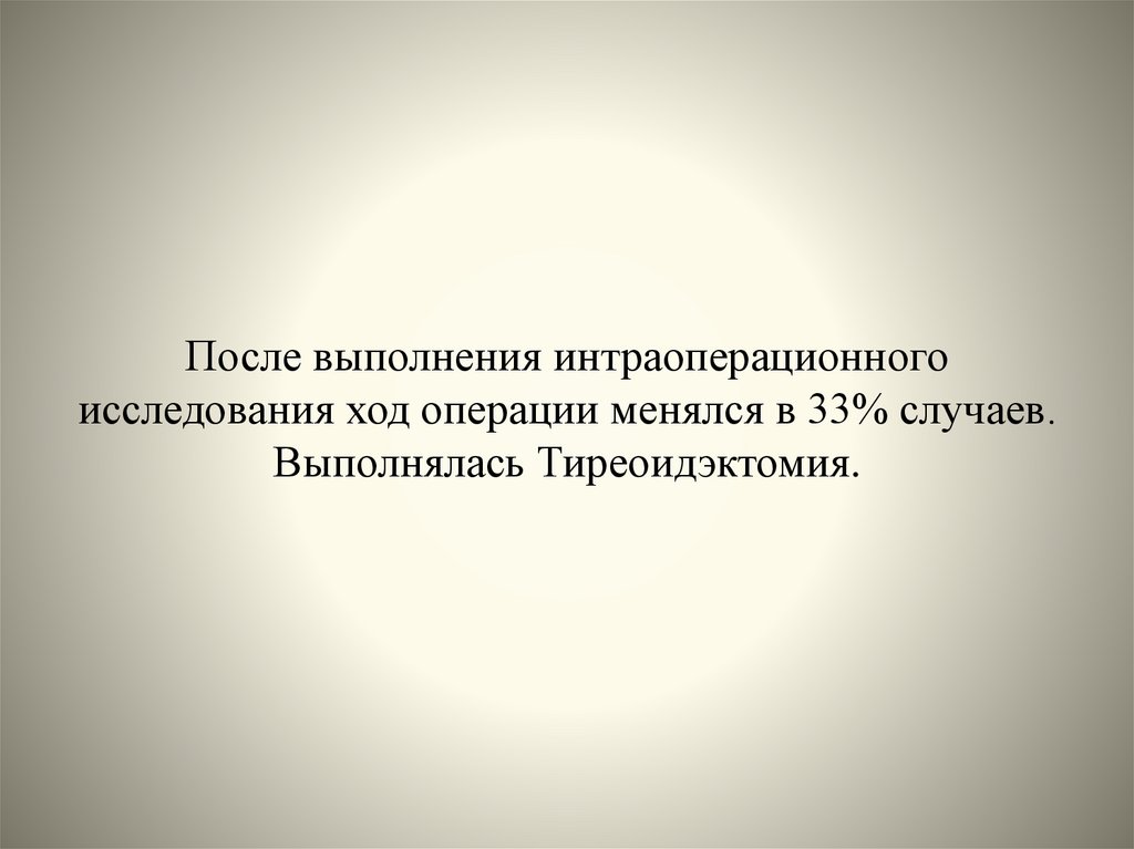 После выполнения интраоперационногоисследования ход операции менялся в 33% случаев.