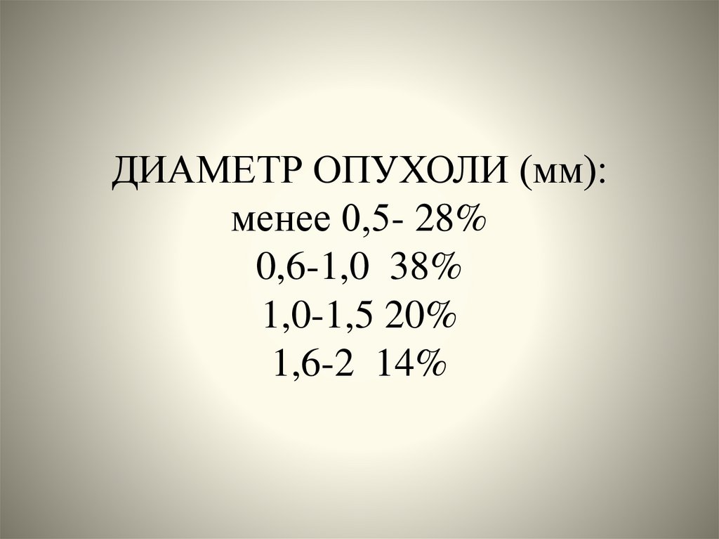 ДИАМЕТР ОПУХОЛИ (мм):менее 0,5- 28%