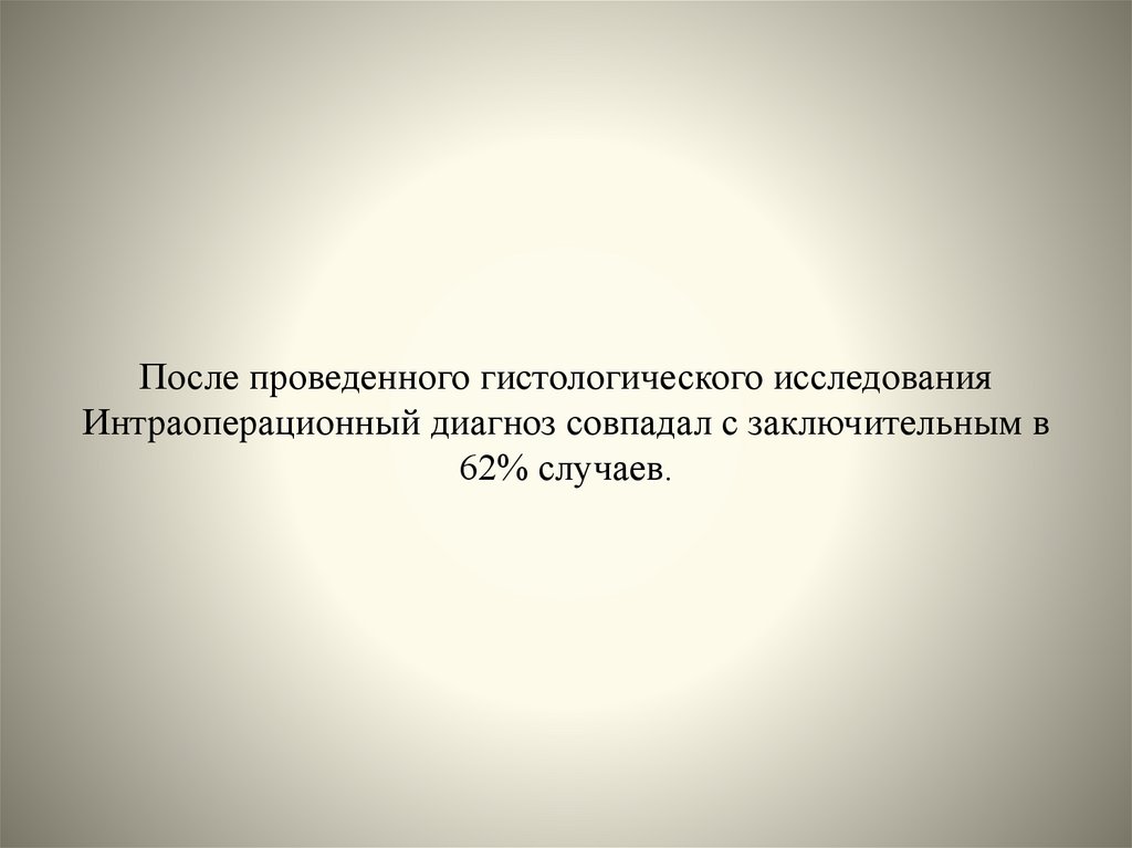 После проведенного гистологического исследованияИнтраоперационный диагноз совпадал с заключительным в