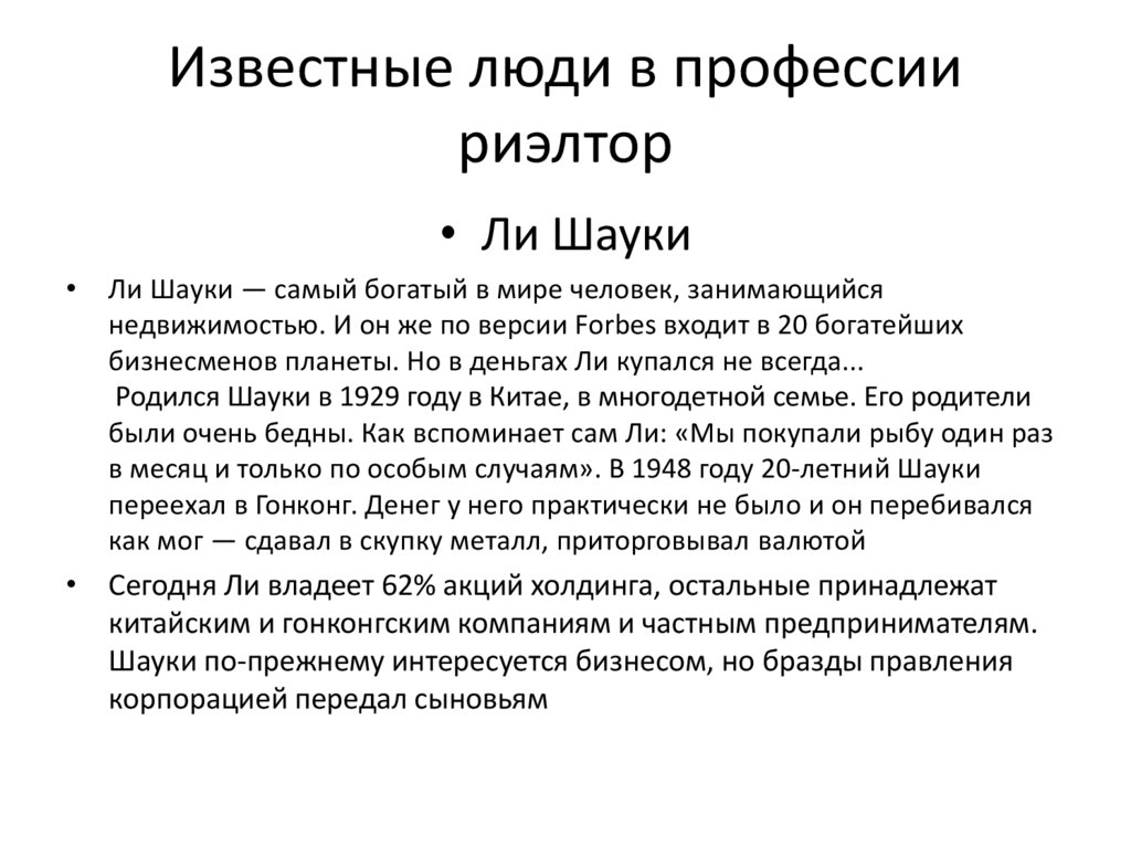 Известные люди в профессиириэлтор