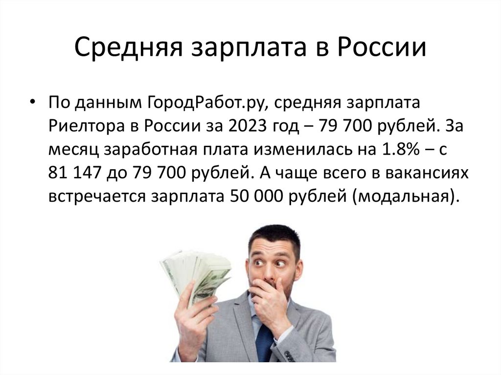 Средняя зарплата в России• По данным ГородРабот.ру, средняя зарплата