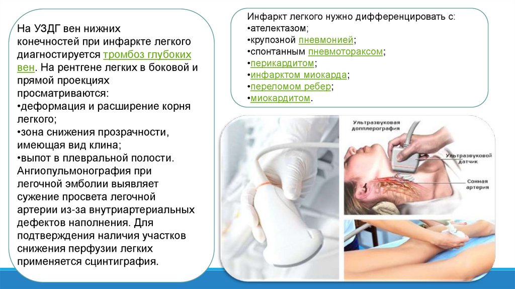 На УЗДГ вен нижнихконечностей при инфаркте легкого
