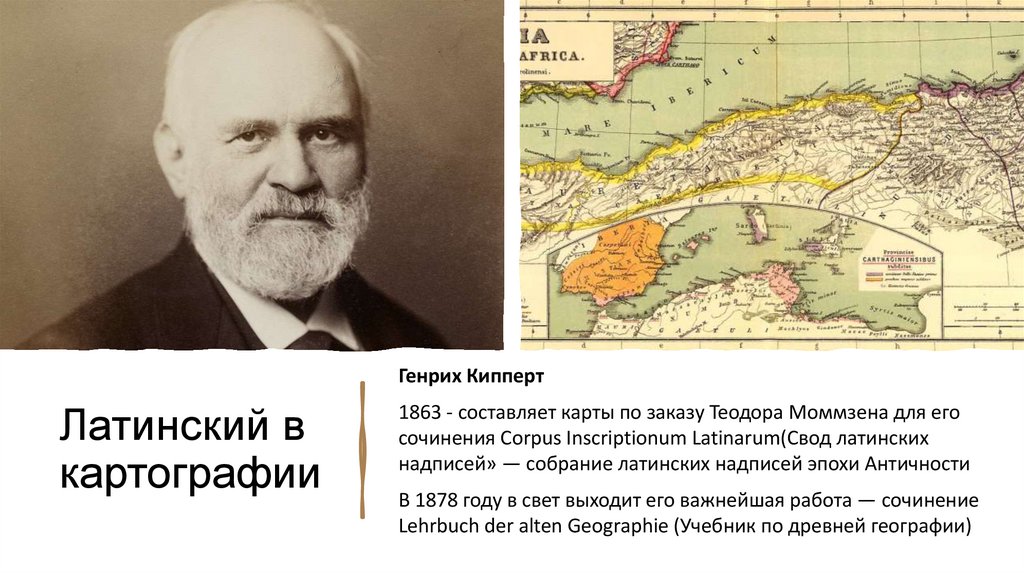 1863 - составляет карты по заказу Теодора Моммзена для его