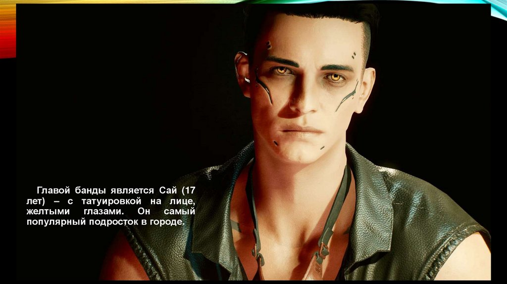 Главой банды является Сай (17лет) – с татуировкой на лице,