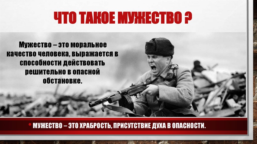 ЧТО ТАКОЕ МУЖЕСТВО ?Мужество – это моральное