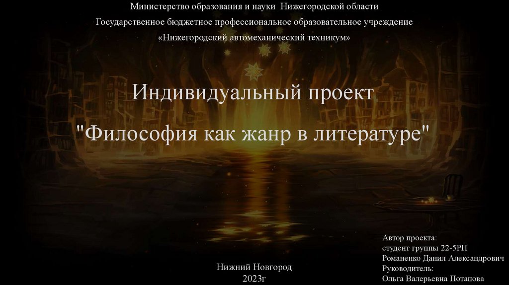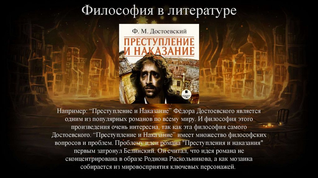 Философия в литературеНапример: “Преступление и Наказание” Фёдора Достоевского является