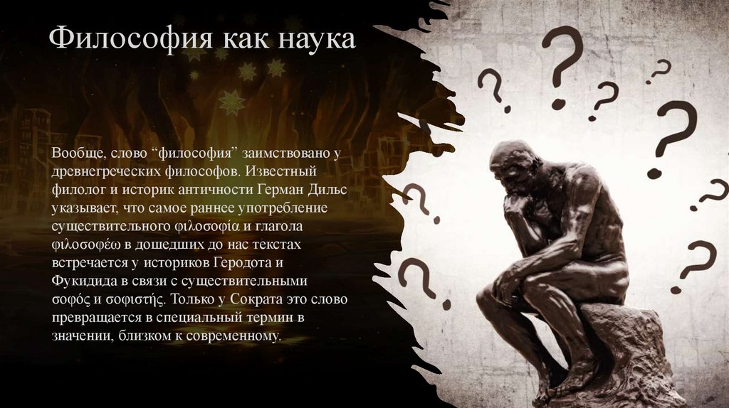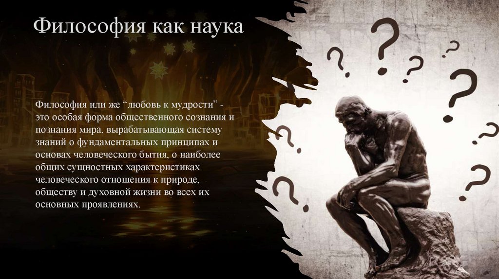 Философия как наукаФилософия или же “любовь к мудрости” это особая форма общественного сознания и