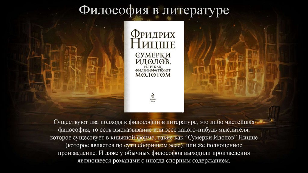 Философия в литературеСуществуют два подхода к философии в литературе, это либо чистейшая