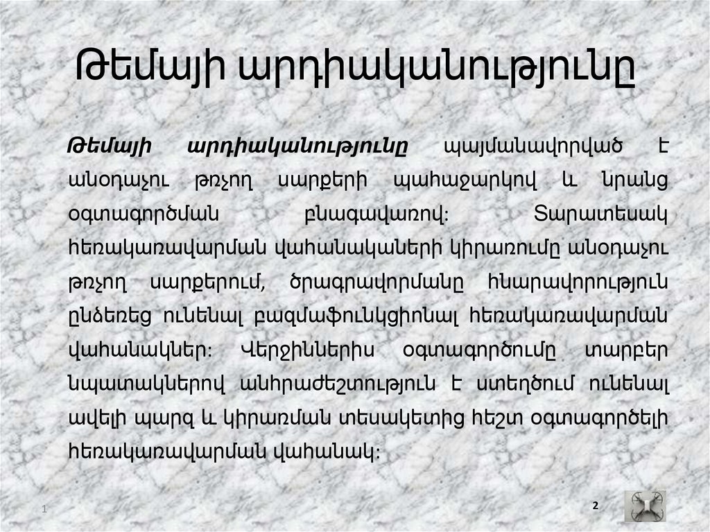 Ներկայացնել անօդաչու թռչող սարքի հեռակառավարման վահանակի