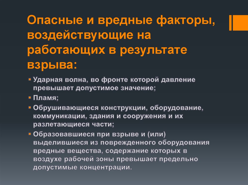 Меры, предотвращающие воздействие на людей опасных и вредных факторов взрыва и обеспечивающие сохранение