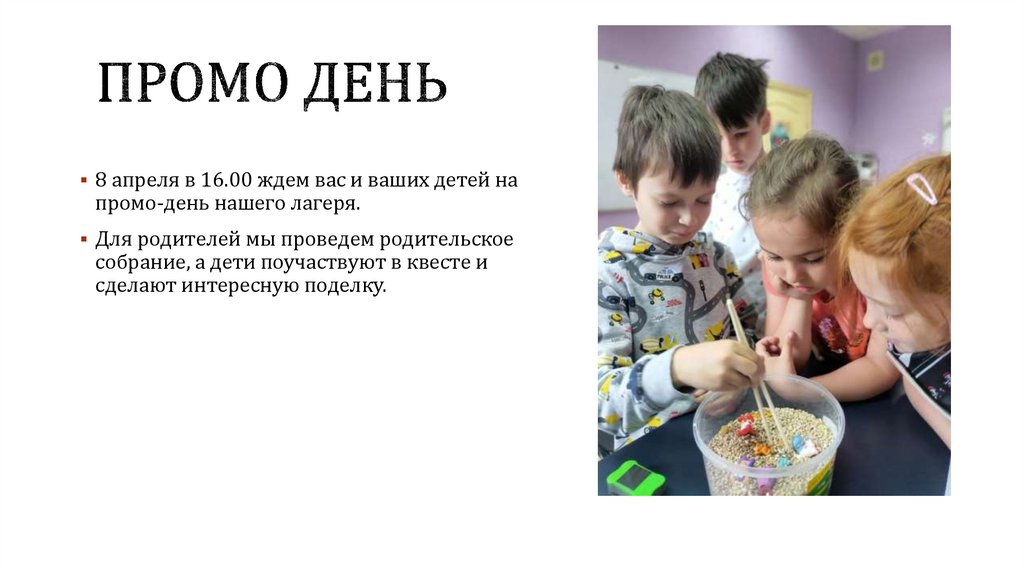 8 апреля в 16.00 ждем вас и ваших детей напромо-день нашего лагеря.