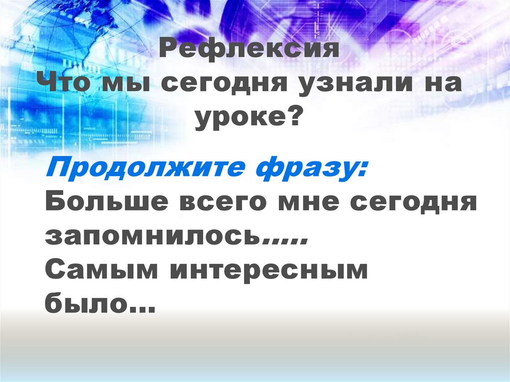 РефлексияЧто мы сегодня узнали на