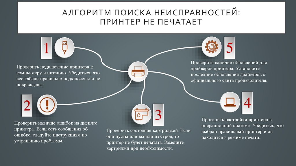 АЛГОРИТМ ПОИСКА НЕИСПРАВНОСТЕЙ :ПРИНТЕР НЕ ПЕЧАТАЕТ