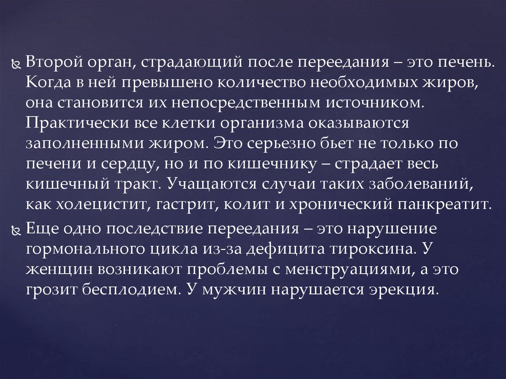 Второй орган, страдающий после переедания – это печень.Когда в ней превышено количество необходимых жиров,