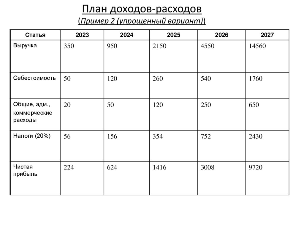 План доходов-расходов(Пример 2 (упрощенный вариант))