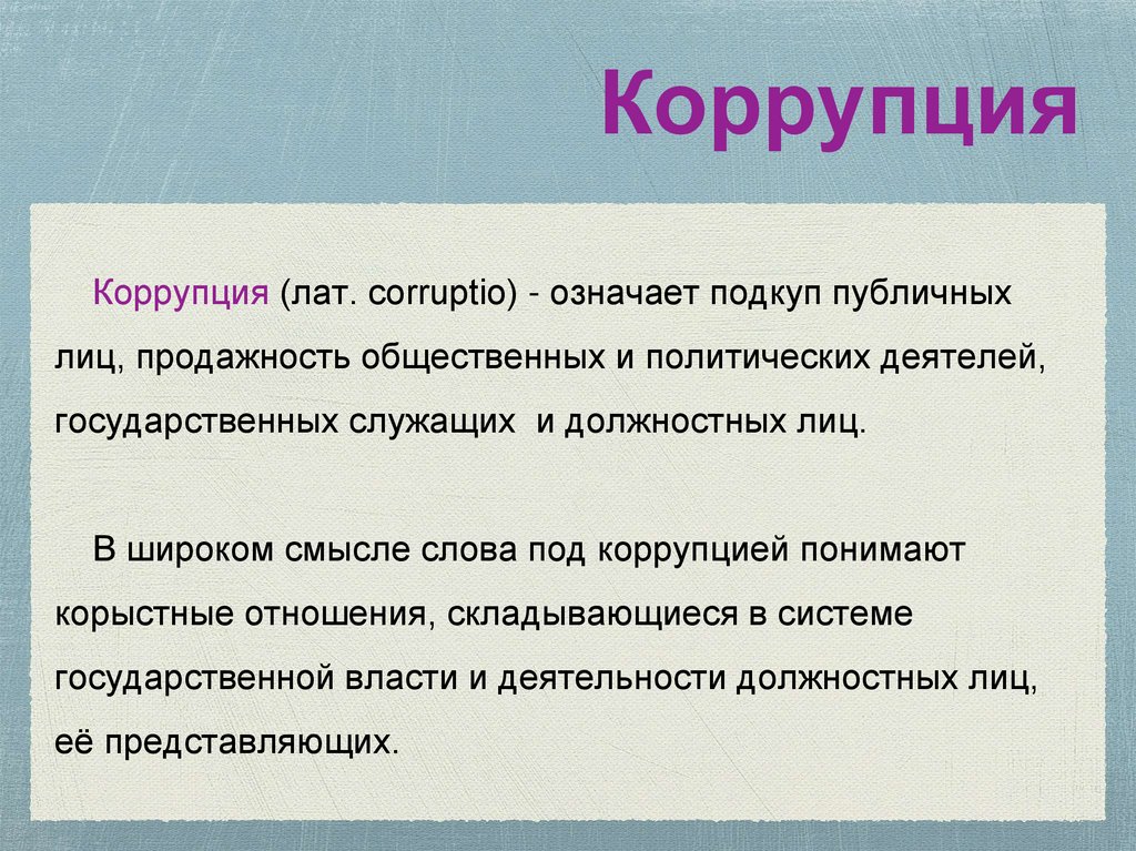 КоррупцияКоррупция (лат. сorruptio) - означает подкуп публичных