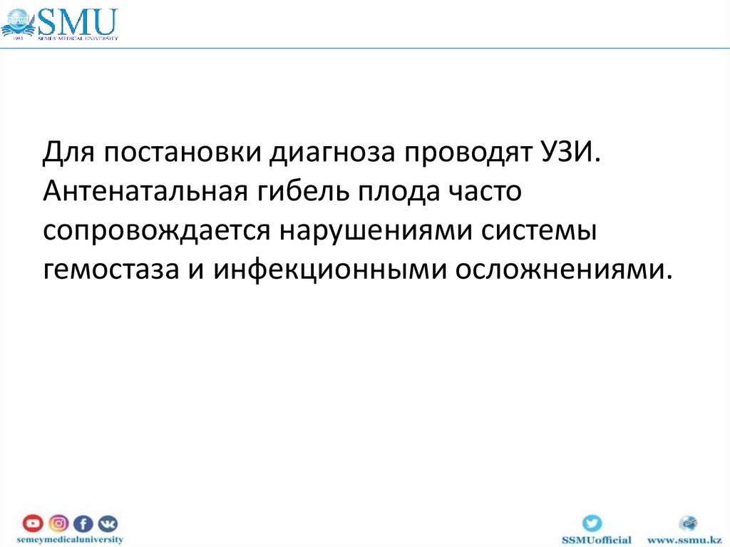 Для постановки диагноза проводят УЗИ.Антенатальная гибель плода часто