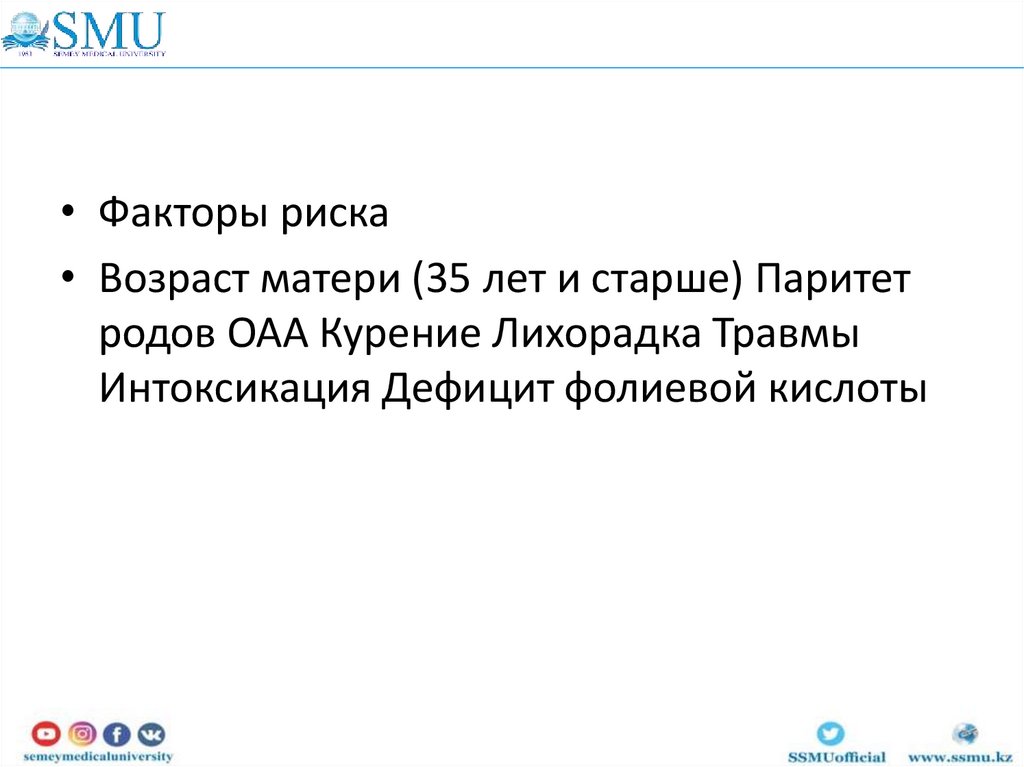 • Факторы риска• Возраст матери (35 лет и старше) Паритет