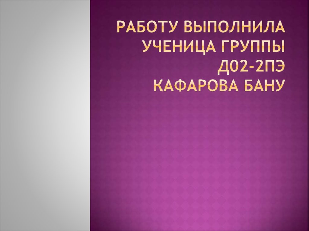 1. Работу выполнила ученица группы Д02-2пэ Кафарова Бану