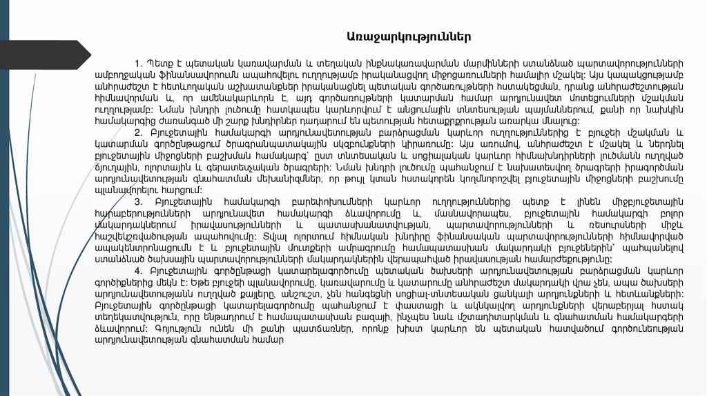 Առաջարկություններ1․ Պետք է պետական կառավարման և տեղական ինքնակառավարման մարմինների uտանձնած պարտավորությունների