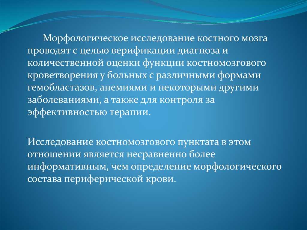 Морфологическое исследование костного мозгапроводят с целью верификации диагноза и