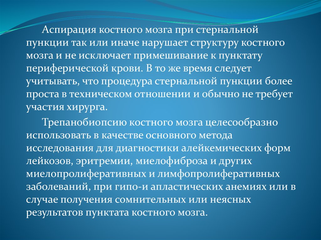Аспирация костного мозга при стернальнойпункции так или иначе нарушает структуру костного
