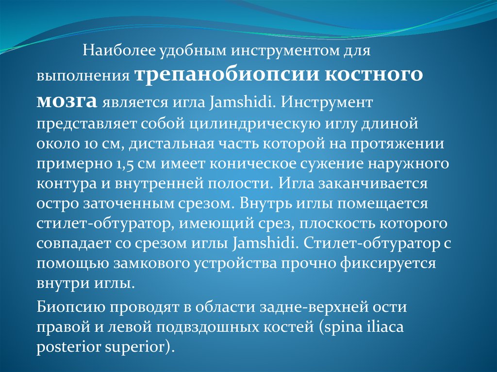 Наиболее удобным инструментом длявыполнения трепанобиопсии костного