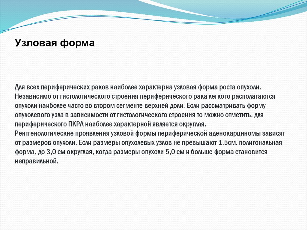 Рентгенологические проявления узловой формы периферической аденокарциномы зависят