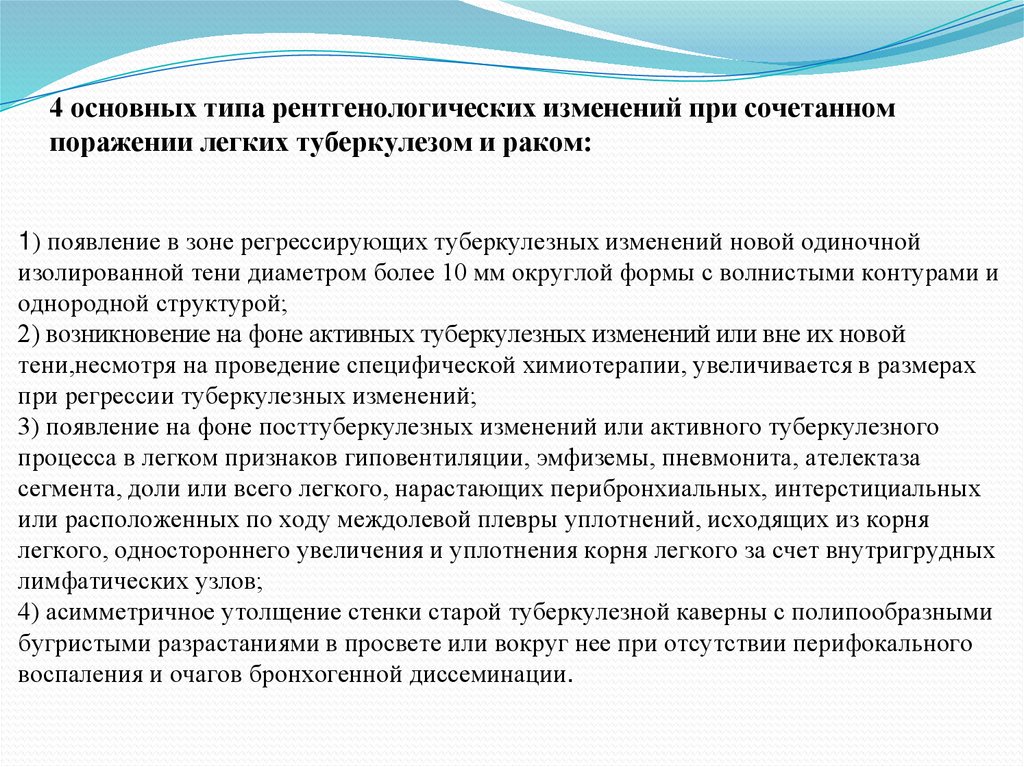 3) появление на фоне посттуберкулезных изменений или активного туберкулезного