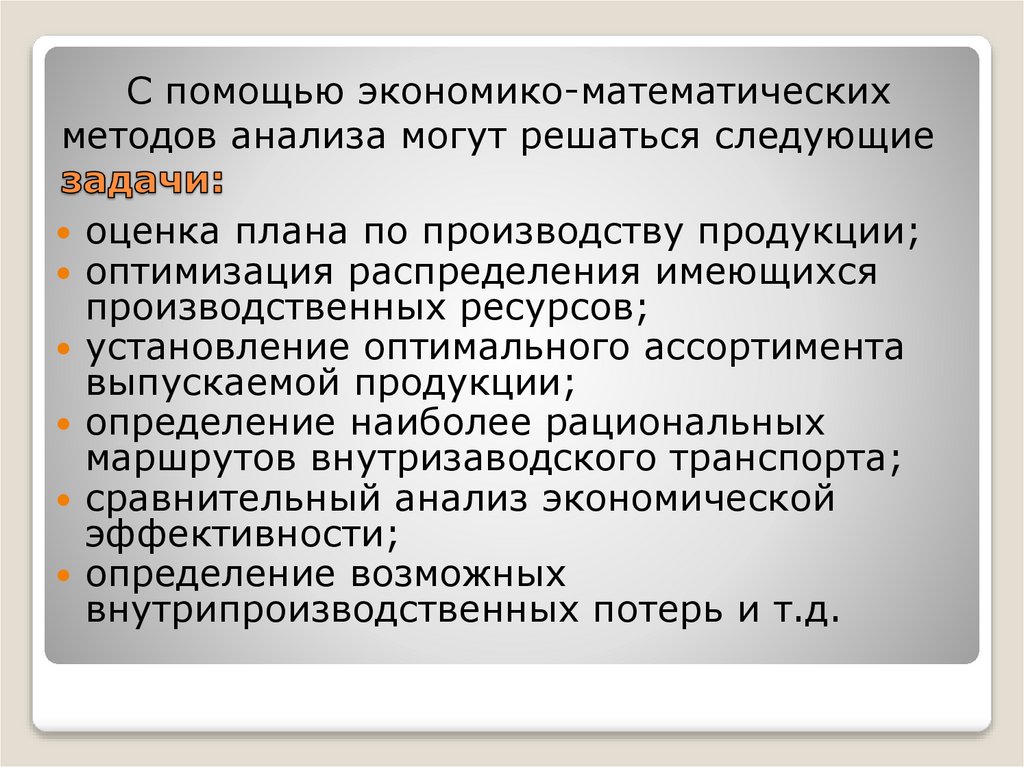 С помощью экономико-математическихметодов анализа могут решаться следующие