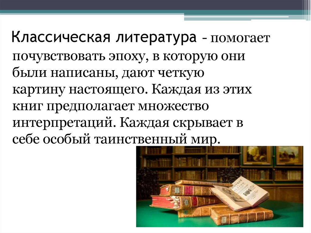 Классическая литература - помогаетпочувствовать эпоху, в которую они