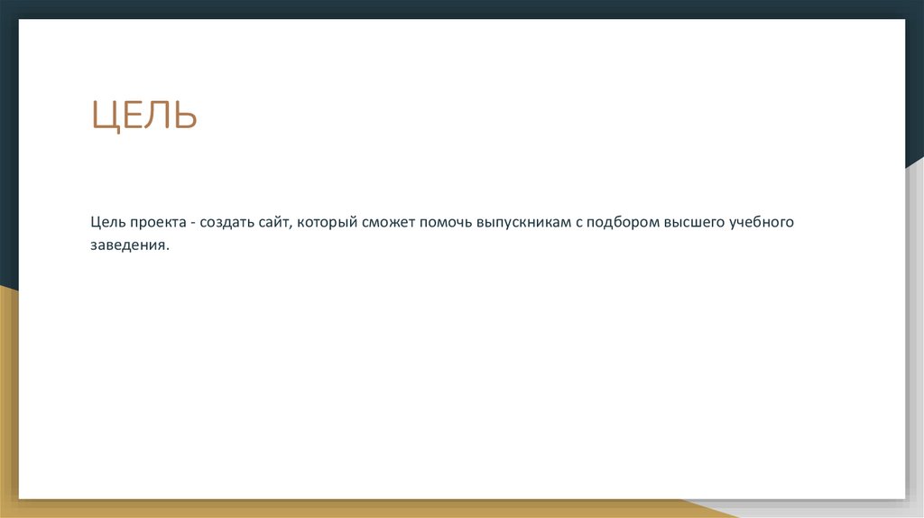 ЦЕЛЬЦель проекта - создать сайт, который сможет помочь выпускникам с подбором высшего учебного