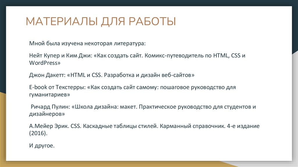 МАТЕРИАЛЫ ДЛЯ РАБОТЫМной была изучена некоторая литература: