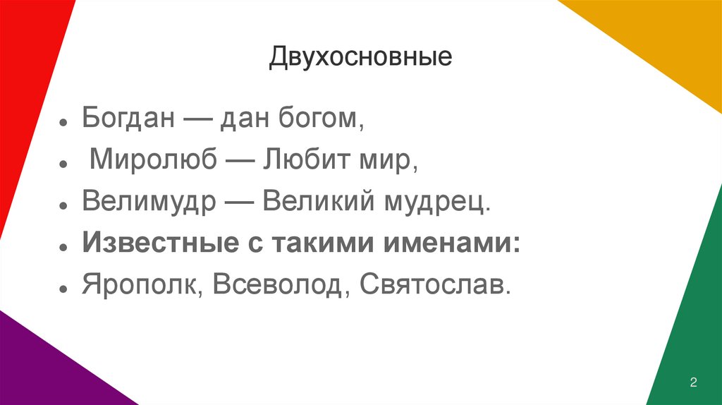 ДвухосновныеБогдан — дан богом,
