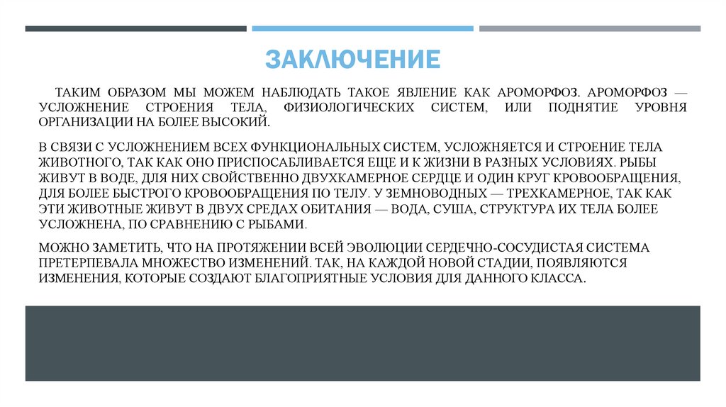 ЗАКЛЮЧЕНИЕТАКИМ ОБРАЗОМ МЫ МОЖЕМ НАБЛЮДАТЬ ТАКОЕ ЯВЛЕНИЕ КАК АРОМОРФОЗ. АРОМОРФОЗ —