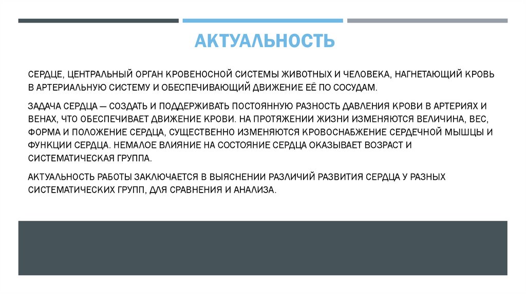 АКТУАЛЬНОСТЬ РАБОТЫ ЗАКЛЮЧАЕТСЯ В ВЫЯСНЕНИИ РАЗЛИЧИЙ РАЗВИТИЯ СЕРДЦА У РАЗНЫХ