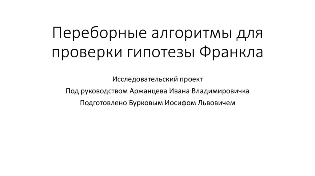 Переборные алгоритмы дляпроверки гипотезы Франкла