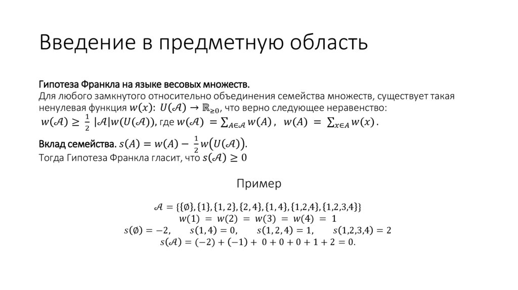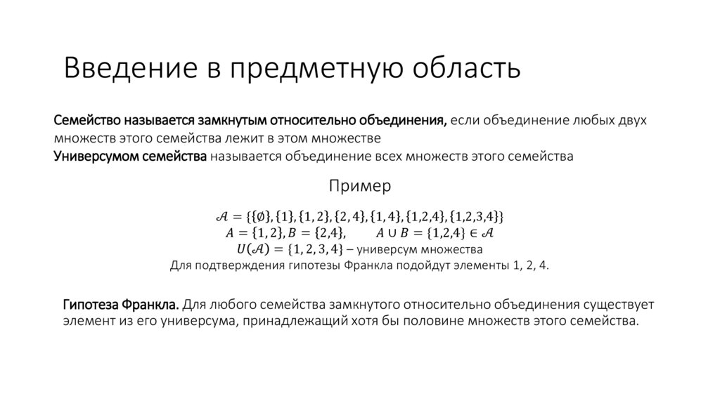 Введение в предметную областьСемейство называется замкнутым относительно объединения, если объединение любых двух