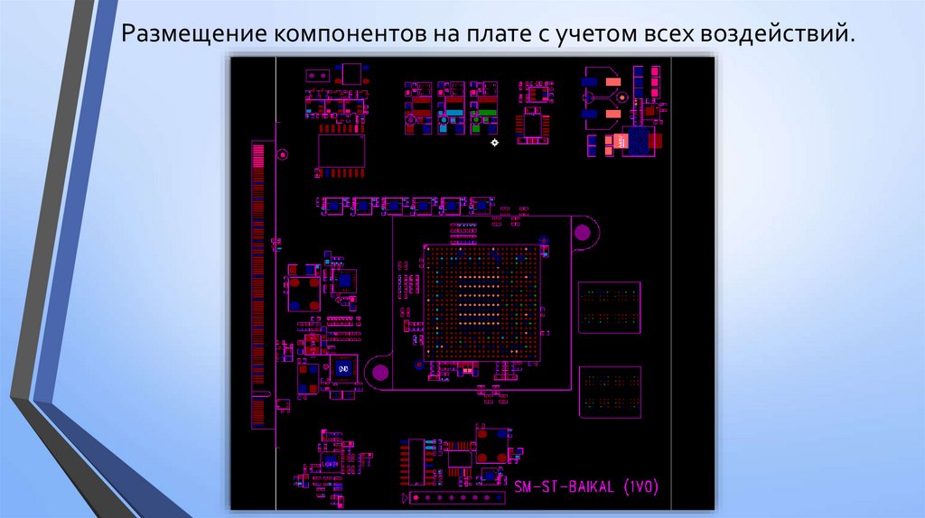 • Размещение компонентов на плате с учетом их влияния друг на друга,