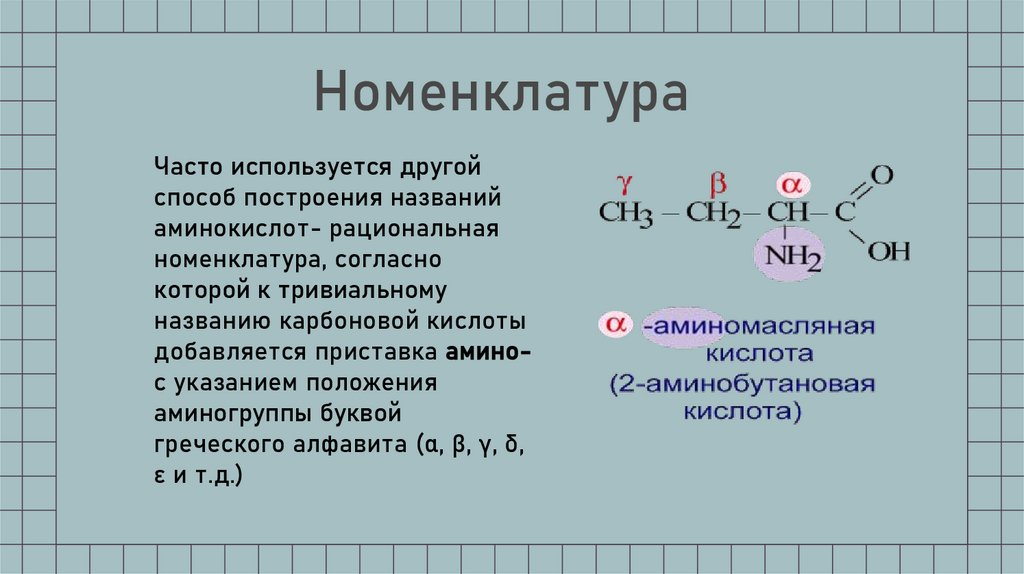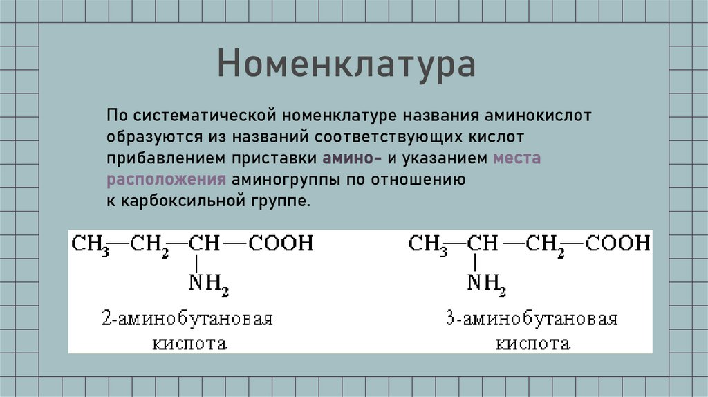 НоменклатураПо систематической номенклатуре названия аминокислот