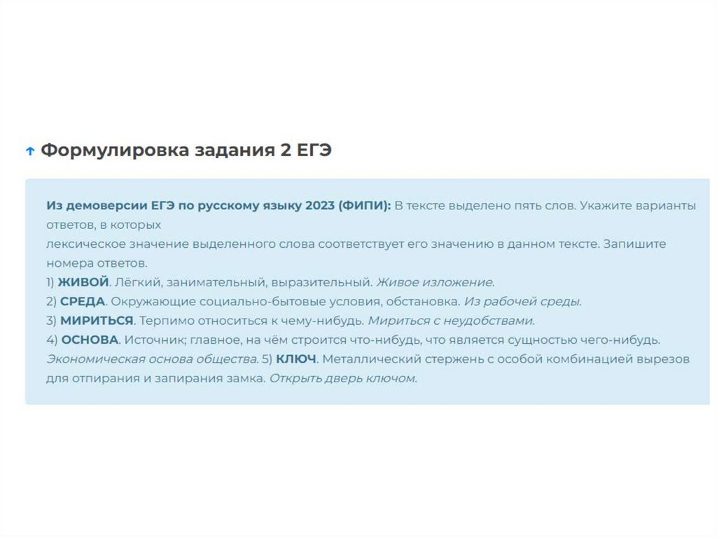 11. ЗАДАНИЕ 2 В тексте выделено пять слов. Укажите варианты ответов, в которых лексическое значение выделенного слова соответствует